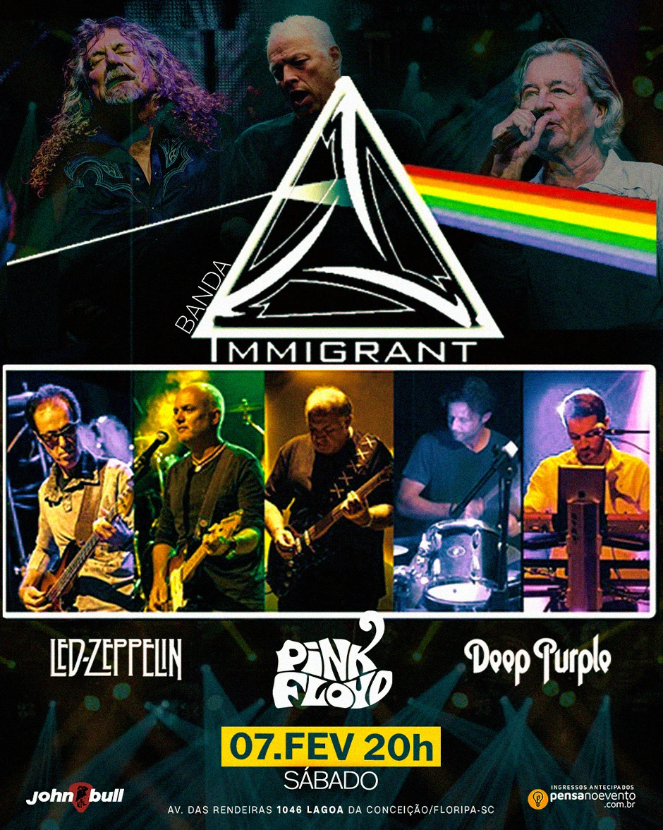 Prepare-se para uma viagem sonora pelos anos 60, 70, 80 com a banda Immigrant, trazendo a alma e a força de nomes como Led Zeppelin, Deep Purple e Pink Floyd.